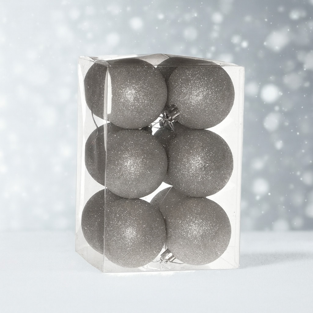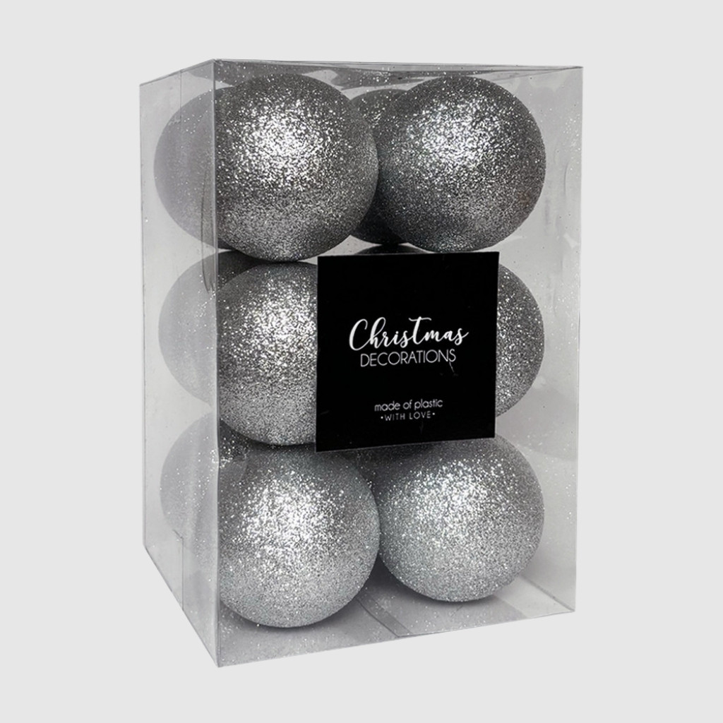 Ezüst glitteres műanyag karácsonyi gömb szett 12x6cm