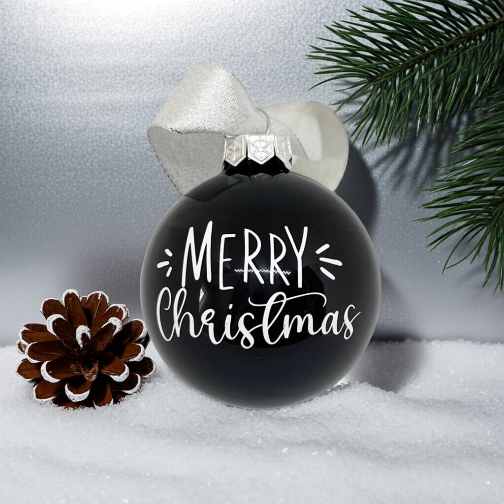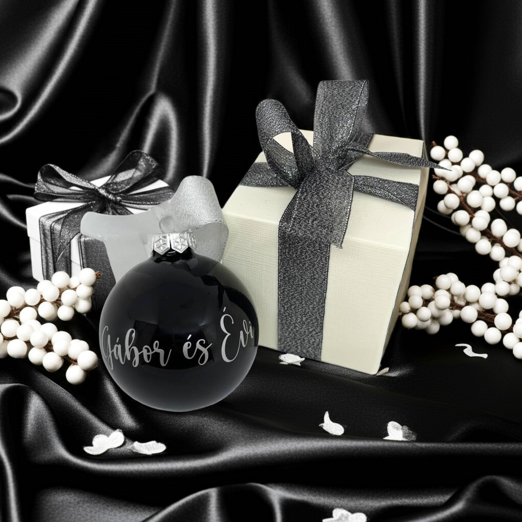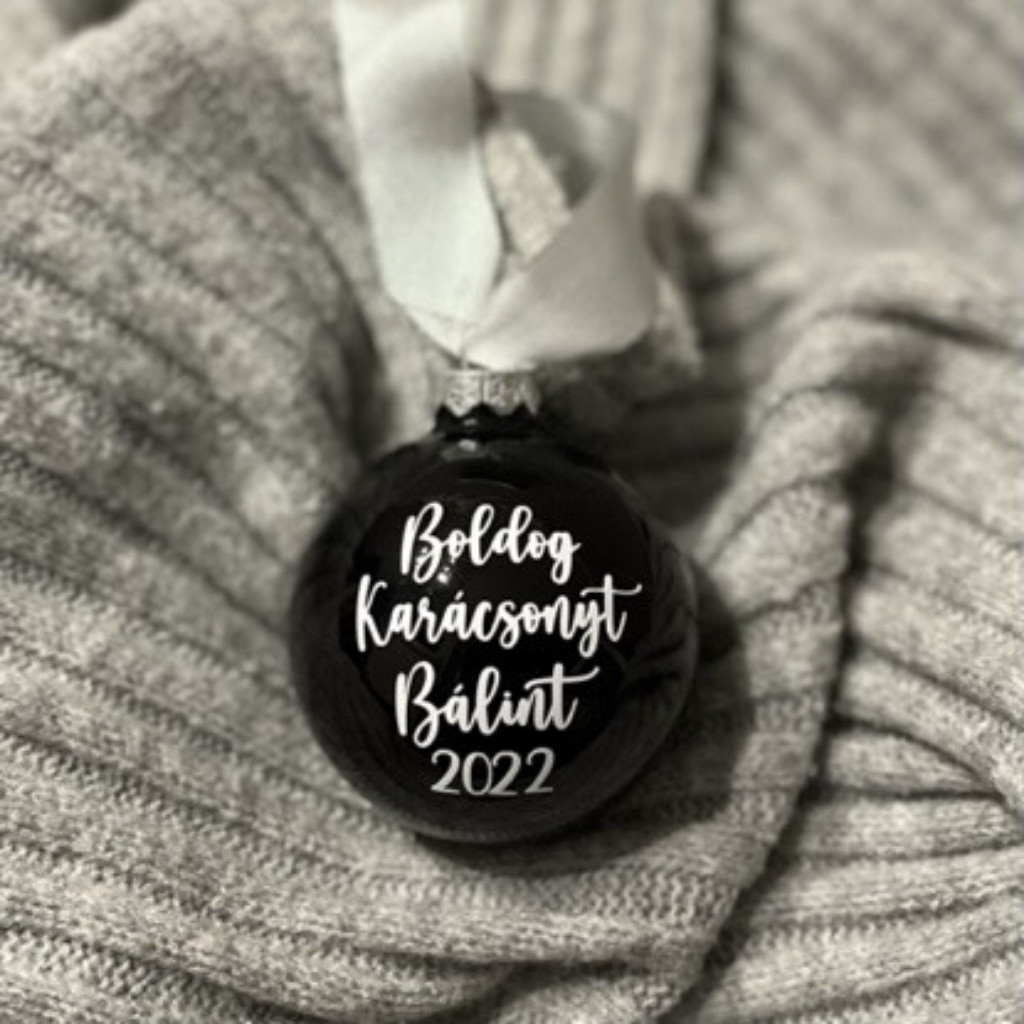 Fényes fekete üveggömb egyedi felirattal 8cm
