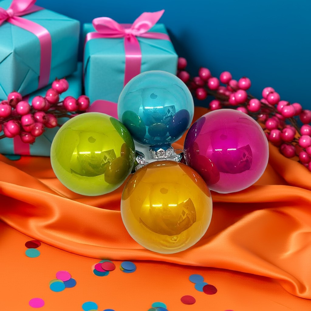 A szett világoskék, pink, sárga és zöld árnyalatokat tartalmaz, így tökéletes választás azoknak, akik szeretnék feldobni a karácsonyfát egy igazán játékos, modern stílussal. Ezek a gömbök nemcsak a karácsonyfán mutatnak remekül, hanem koszorúkon, asztali dekorációkban vagy más ünnepi kiegészítőkben is.
