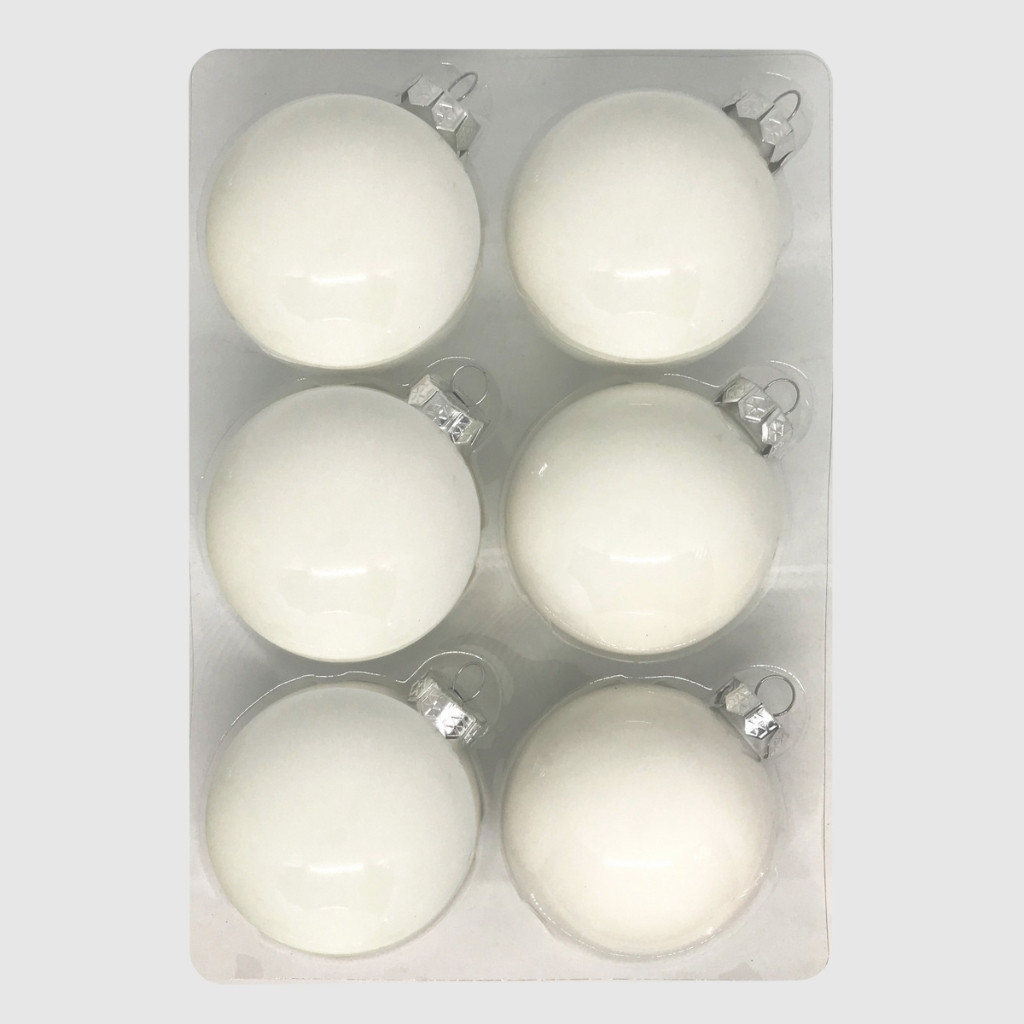 Just White fényes fehér üveg karácsonyi gömb szett 6*8cm