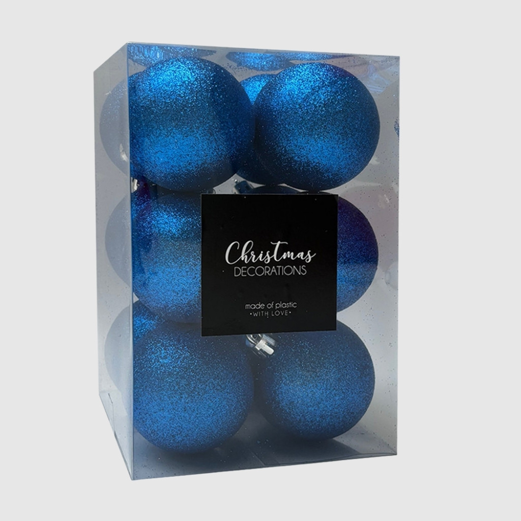 Kék glitteres műanyag karácsonyi gömb szett 12x6cm