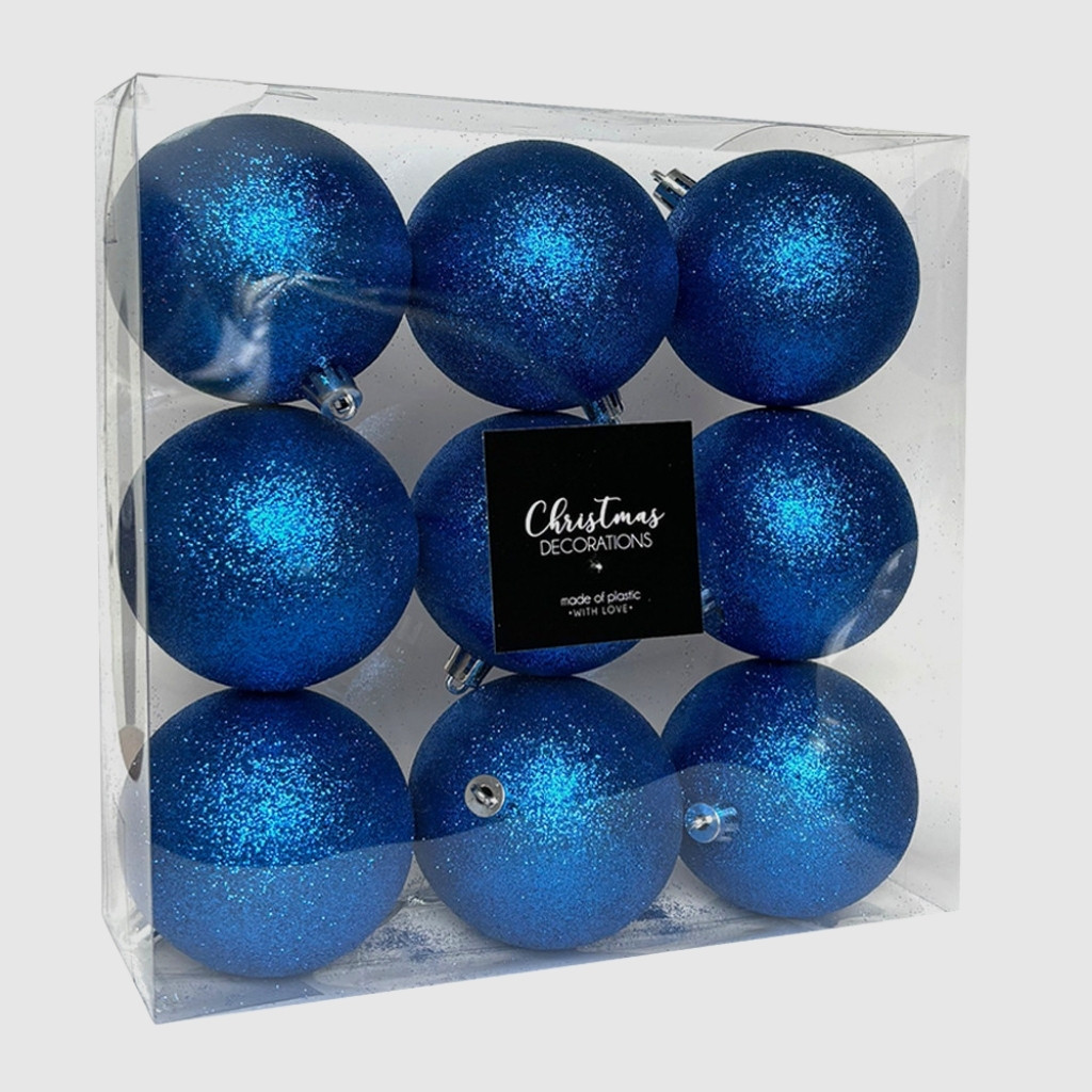 Kék glitteres műanyag karácsonyi gömb szett 9x8cm