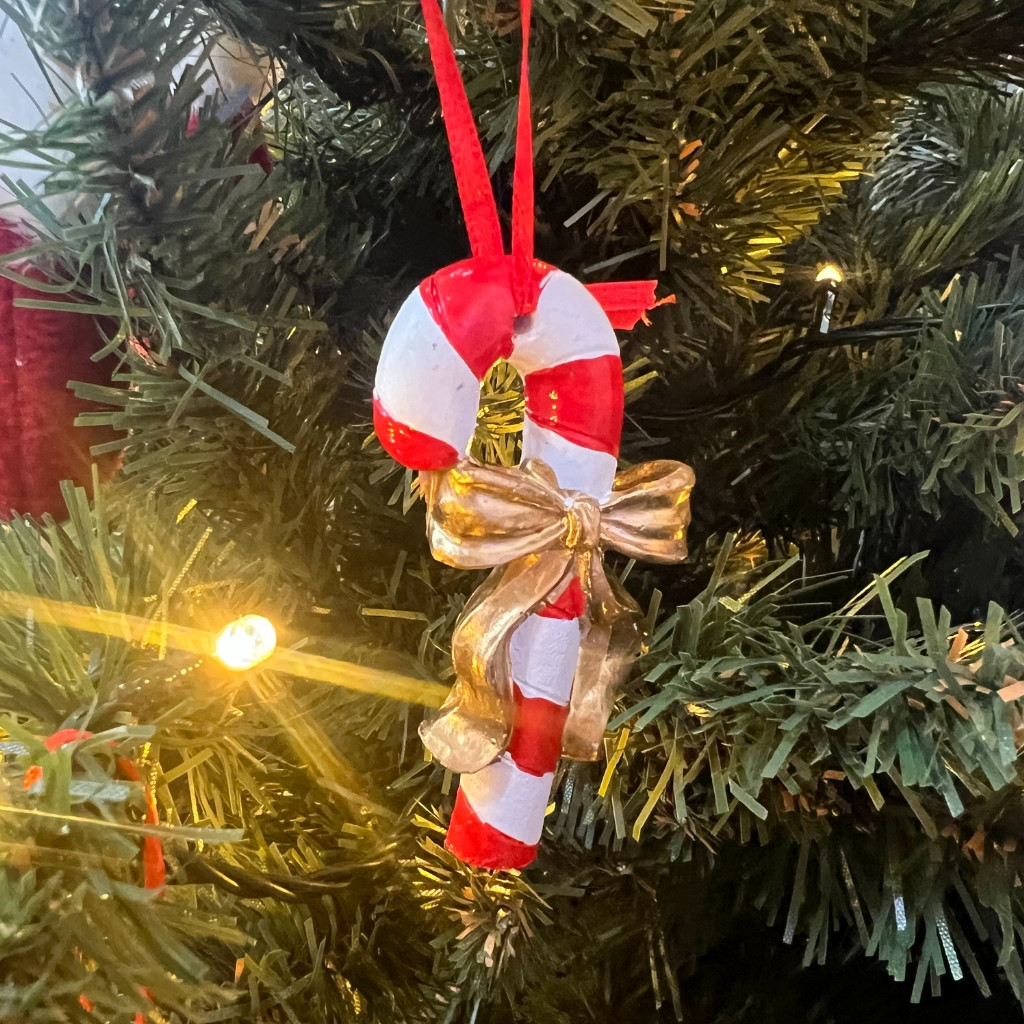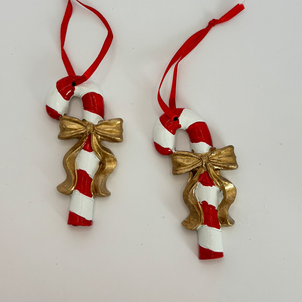 Ez a két darabos nyalóka poly dísz a karácsony legvidámabb oldalát hozza el otthonodba! A piros-fehér csíkozás és az arany masni klasszikus, játékos megjelenést kölcsönöz, amely a hagyományos karácsonyi dekorációk tökéletes kiegészítője. Bár nem ehető, mégis igazi „szuperédes” hangulatot varázsol bármely térbe.
