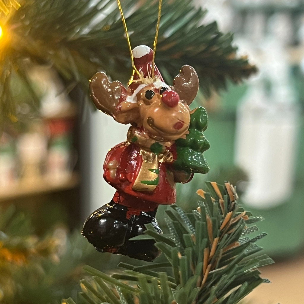 Ezek a bájos kis rénszarvas figurák elhozzák a karácsony játékos és szeretetteljes hangulatát! A 4 cm-es méretű, aranyos részletekkel kidolgozott figurák Mikulás sapkát viselnek, kezükben apró fenyőfával – igazi ünnepi kedvencek. A fényes festésnek és a mosolygós arcoknak köszönhetően ezek a kis rénszarvasok azonnal feldobják a karácsonyfát vagy bármely dekorációt, amelyre felkerülnek.