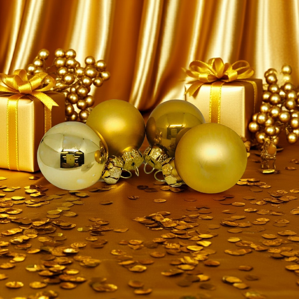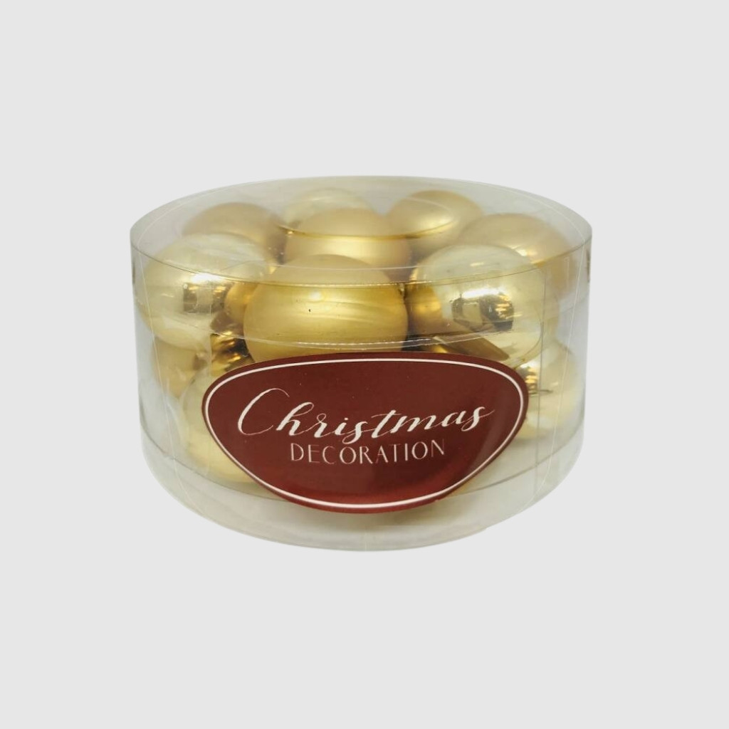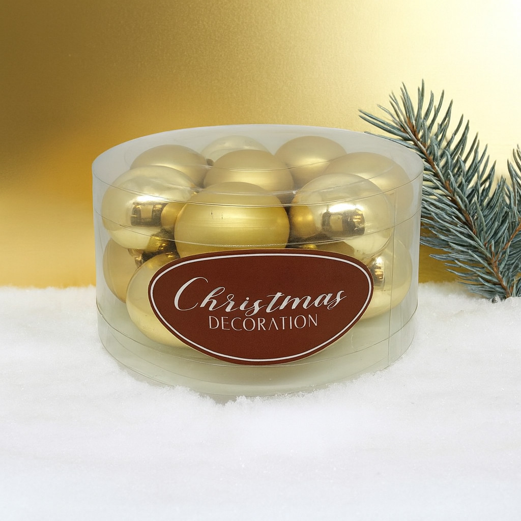 Ez a 16 darabos, 3 cm-es üvegdísz szett arany árnyalatban, fényes és matt felülettel készül, amely időtlen eleganciát és ragyogást kölcsönöz minden ünnepi dekorációnak. Az arany szín a bőség, a fény és a meghittség szimbóluma, így tökéletes választás, ha igazán ünnepélyes és varázslatos karácsonyi hangulatot szeretnél teremteni.