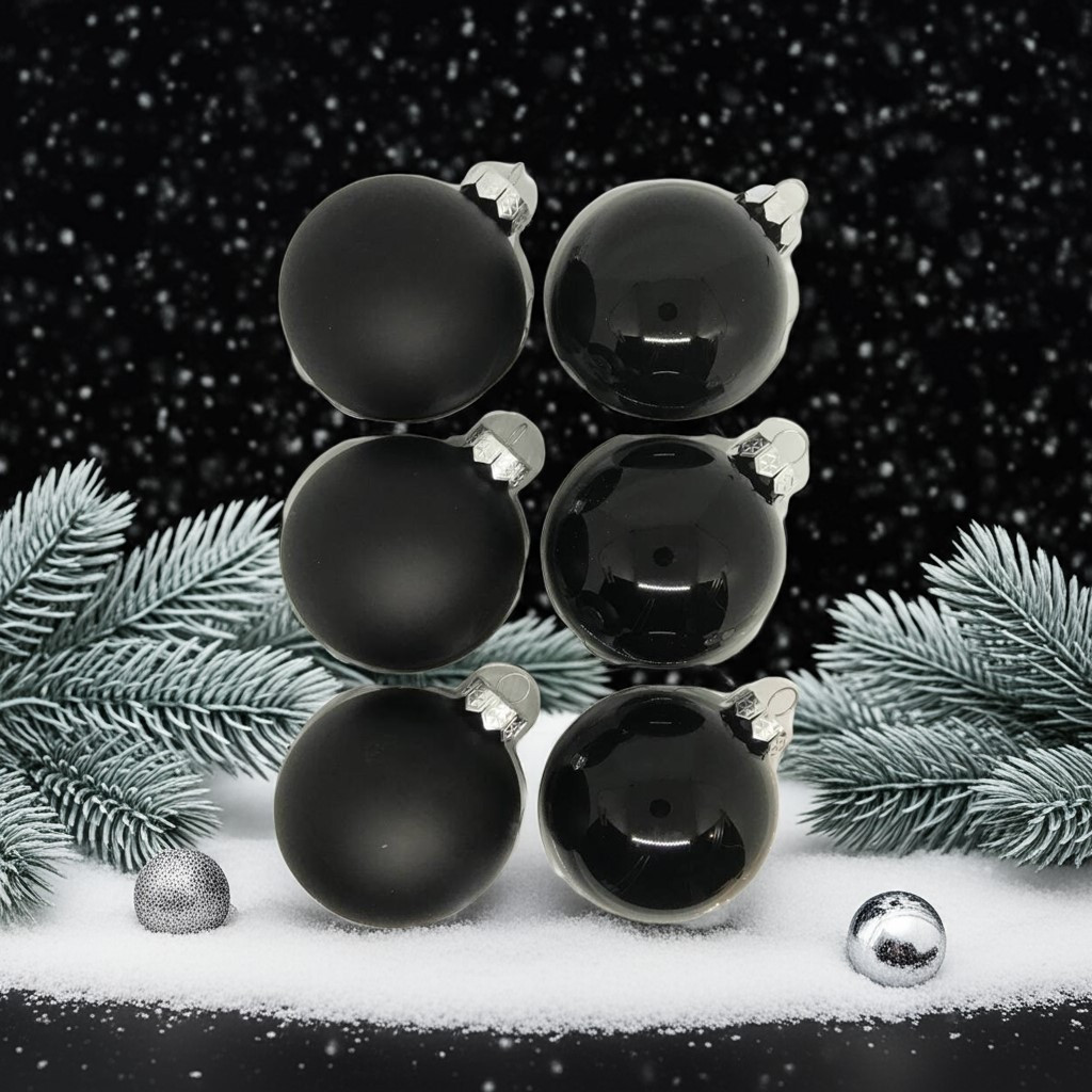 Ez a 6 darabos, 8 cm-es üveggömb szett a fekete gyöngyházfényű és matt felületek harmonikus kombinációjával teremti meg a karácsony modern és kifinomult hangulatát. A díszek letisztult, elegáns megjelenése kiemeli a karácsonyfa pompáját, tökéletes választás a klasszikus és a kortárs dekoráció kedvelőinek egyaránt.