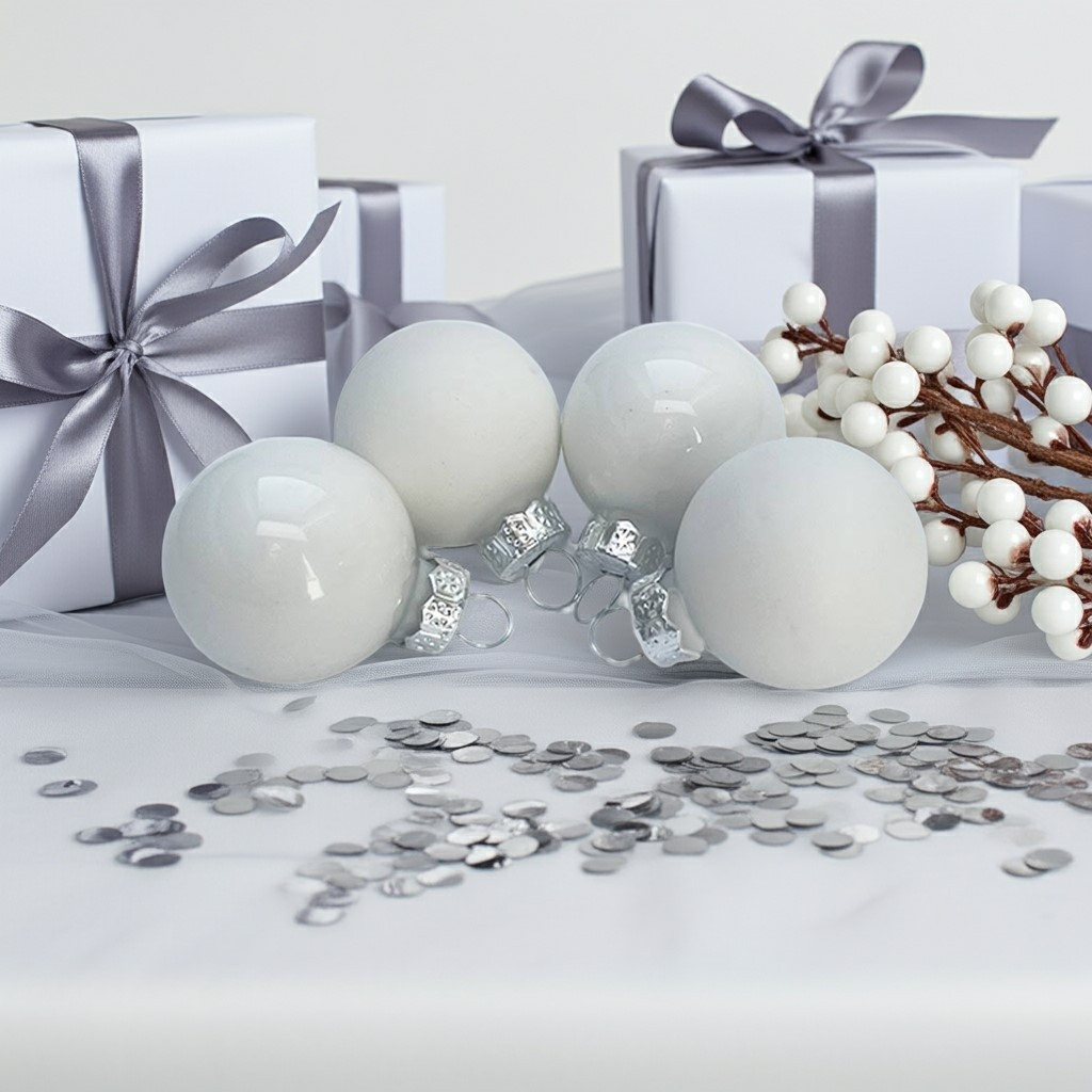 Ez a szett nem csupán a karácsonyfa éke lehet, hanem más dekorációs ötletekhez is használható: asztaldíszekhez, koszorúkhoz vagy akár kreatív ünnepi kompozíciókhoz. A fehér üveggömbök a tisztaság, békesség és kifinomultság jelképeként varázsolják különlegessé az otthonod ünnepi hangulatát.