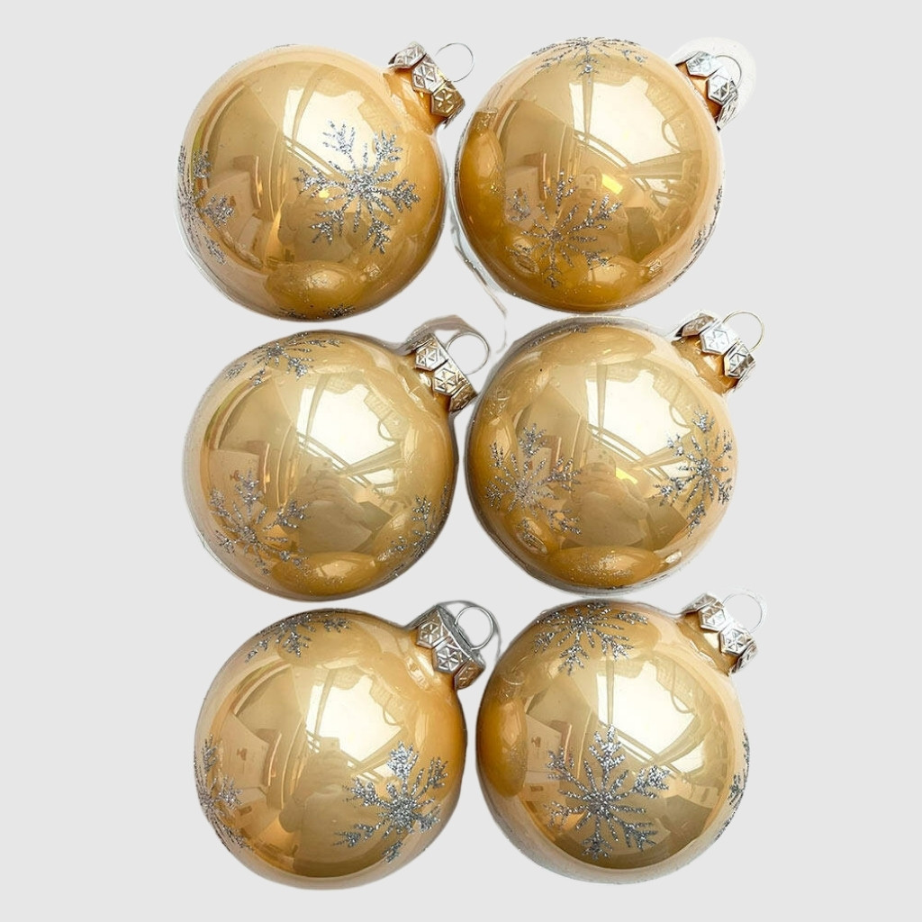 Gold snowflake pezsgőszínű kézzel festett üveg karácsonyi gömb szett 6*7cm